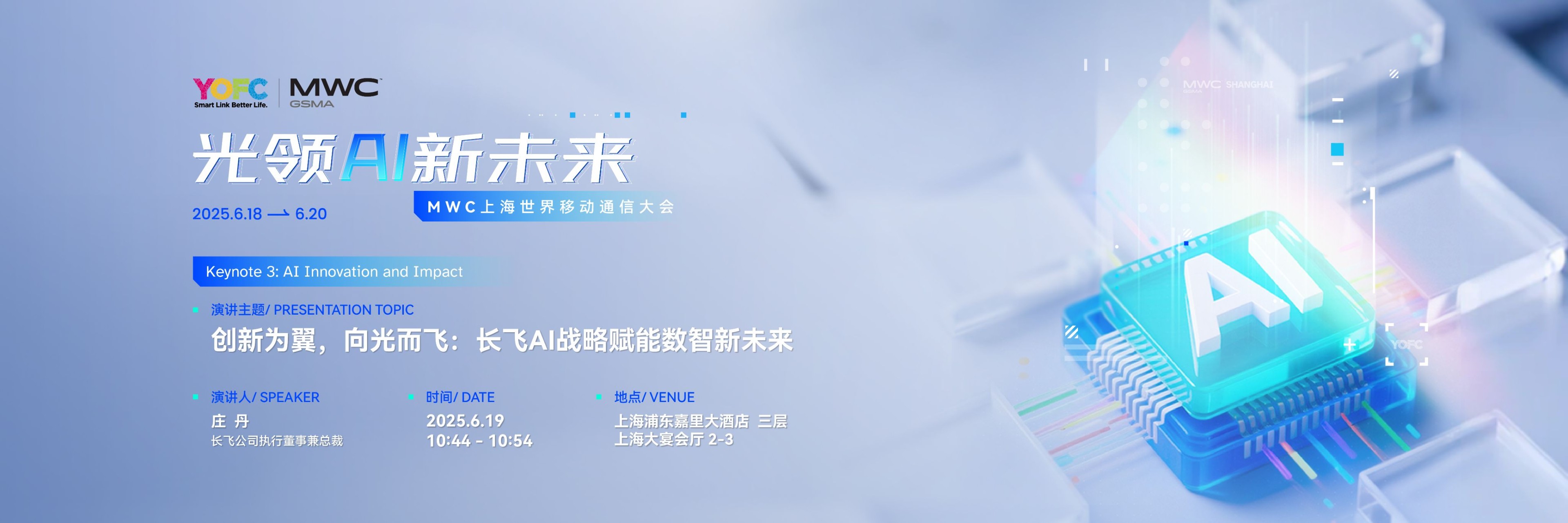 演講主題創(chuàng)新為翼,向光而飛:長(zhǎng)飛AI戰(zhàn)略賦能數(shù)智新未來(lái)演講時(shí)間2025.6.19 10:44-10:54演講地點(diǎn)上海浦東嘉里大酒店三層 上海大宴會(huì)廳2-3